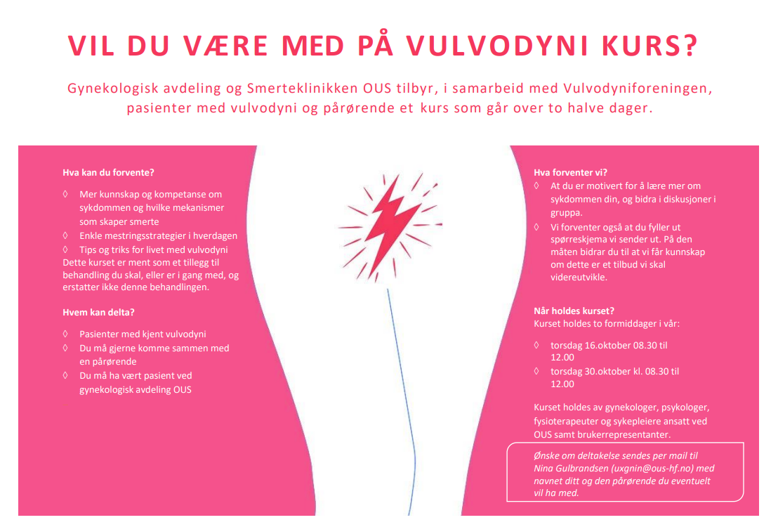 Nytt kurs for pasienter med vulvodyni og deres pårørende!